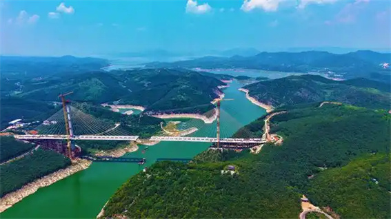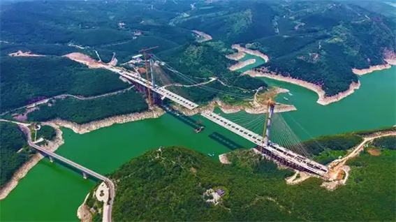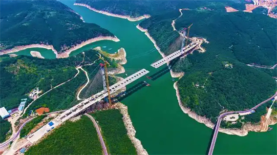 8月2日,空中俯瞰位于淅川縣的澠淅高速淅川至豫鄂省界段丹江小三峽特大橋項(xiàng)目建設(shè)現(xiàn)場(chǎng)。澠淅高速淅川至豫鄂省界段北起河南淅川,南至豫鄂省界順接湖北十淅高速公路,全長(zhǎng)24.838公里,是河南省高速公路“13445工程”第一批重點(diǎn)項(xiàng)目之一,項(xiàng)目建成后,將大大緩解沿線丹江口水庫(kù)庫(kù)區(qū)300萬(wàn)居民的出行困難,開(kāi)辟陜西、河南、湖北三省之間產(chǎn)業(yè)發(fā)展、人流物流新通道。