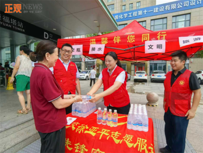 當(dāng)天,鄭州公交徐亞平志愿服務(wù)隊聯(lián)合亞太社區(qū)、福塔社區(qū),共同開展“空瓶換水,文明旅游”暑假特色活動,用趣味實踐向市民傳遞文明旅游理念;顒蝇F(xiàn)場來往群眾絡(luò)繹不絕,不少游客和過往市民踴躍參與。“孩子剛喝完水的水瓶一直拿著沒來得及丟掉,沒想到正好碰到這樣的活動。”帶著孩子參與活動的市民王先生說,在換取的過程中,孩子還主動問起怎樣做才是文明旅游,讓他覺得這樣的活動特別有教育意義。