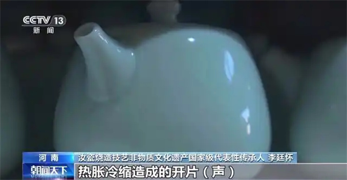 汝瓷燒造技藝非物質文化遺產(chǎn)國家級代表性傳承人 李廷懷:這個風鈴般的聲音就是瓷器胎子收縮,釉子膨脹,熱脹冷縮造成的開片聲。古人給我們留下了美麗的陶瓷藝術,我們不光要傳承,更要創(chuàng)新。
