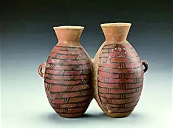 1972年,彩陶雙連壺出土于河南鄭州大河村遺址,距今6800至3500年。據(jù)發(fā)掘者回憶,彩陶雙連壺出土時曾一度被誤認為是各殘缺一耳的兩件彩陶壺。后來,著名考古學家、北京大學教授嚴文明到大河村遺址指導發(fā)掘工作,發(fā)現(xiàn)這兩件彩陶壺幾乎一 模一樣,不僅紋飾如出一轍,就連殘損處的茬口竟也能嚴絲合縫——它們,原為一體!
