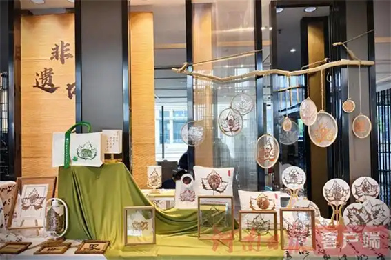 展覽集中展示了全區(qū)多所中小學生創(chuàng)作的多種非遺工藝作品,包括木藝、藍染、中草藥藝術(shù)、版畫、布藝、剪紙、竹編、葉雕、草編、鈞瓷等傳統(tǒng)技藝。