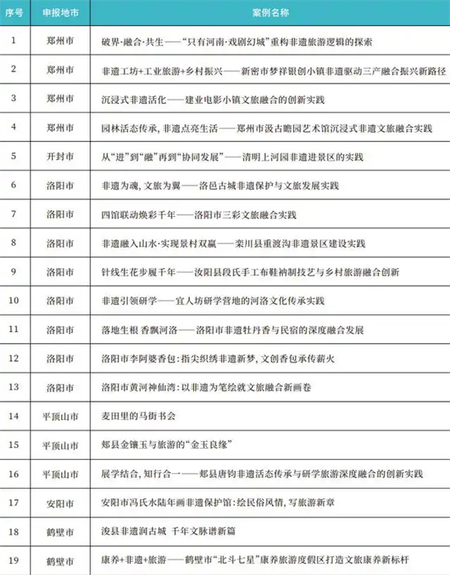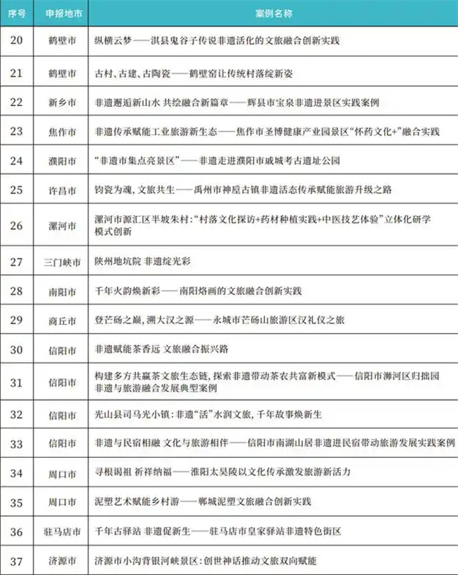 >>>>附河南省非遺與旅游融合發(fā)展優(yōu)秀實踐案例名單