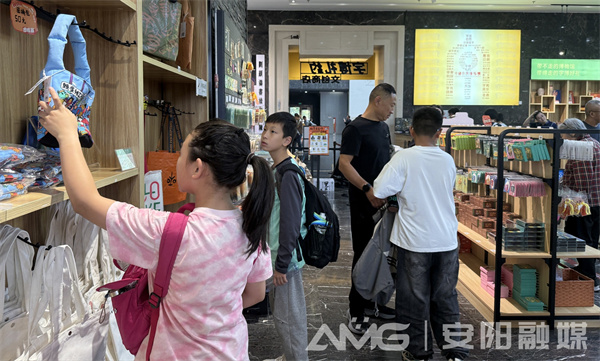 10月1日的中國文字博物館“字博禮約”文創(chuàng)商店,早已被熙攘人流填滿——游客們的目光,全被架上那些“會(huì)說話”的文創(chuàng)牢牢鎖住。