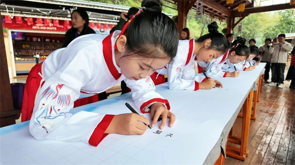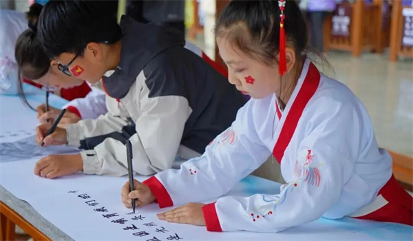 10月1日,在舉國歡慶中華人民共和國76周年華誕之際,“我向祖國書心聲·百名少年兒童書法雅集”活動于雞冠洞溫情啟幕。百名少年兒童齊聚山河之間,以筆墨書寫對祖國的熱愛與祝福。