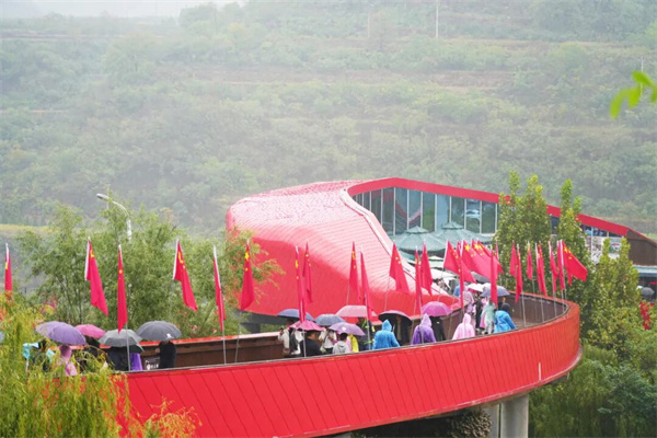 這個(gè)國(guó)慶假期,雖然雨絲紛飛,但紅旗渠景區(qū)內(nèi)依舊人頭攢動(dòng)。游客們撐著傘、披著雨衣,在雨霧中邂逅“人工天河”的別樣韻味。