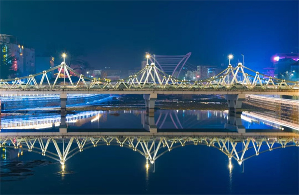 橋和兩岸河堤煥發(fā)生機(jī),在夜色中更加具有別樣的神采,和家人一起來這里走走吧!