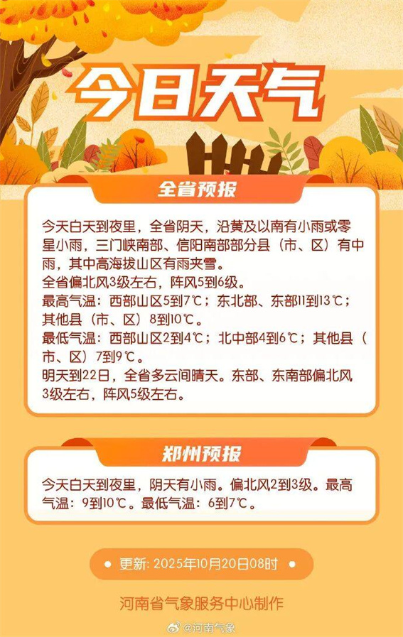 根據(jù)河南氣象部門的監(jiān)測(cè),今天我省沿黃及以南地區(qū)仍有弱降水,其中三門峽、洛陽(yáng)、信陽(yáng)南部等地的部分縣市還會(huì)有中雨,高海拔山區(qū)也可能出現(xiàn)雨夾雪。最低氣溫僅有2℃,棉襖要穿起來了。來源:河南氣象、洛陽(yáng)網(wǎng)、登封文旅、老君山風(fēng)景名勝區(qū)