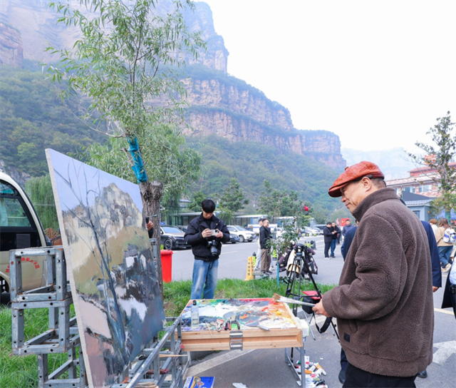活動(dòng)現(xiàn)場(chǎng)聚集了一批寫生的高校師生,他們?cè)谏剿g支起畫架,以青春的筆觸描繪著眼前的巍巍太行,構(gòu)成了一幅“人在畫中,畫在景中”的動(dòng)人圖景。