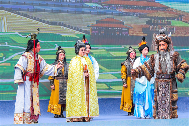 在沉浸式推介環(huán)節(jié),一曲深情婉轉(zhuǎn)的《來不來我都在林州等你》,唱出了林州人民的熱情與期盼;殷墟博物館的《婦好大婚》表演,帶領(lǐng)觀眾穿越千年,感受殷商文明的輝煌氣象;安陽縣帶來的豫劇《盤庚遷殷》,以高亢的唱腔展現(xiàn)殷商大地的古老故事;湯陰縣則以《山河夢(mèng)縈》表演,在光影間展示中華兒女守護(hù)山河的壯志。