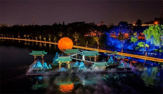 · 在城市地標(biāo)“大玉米”,有《如意龍湖船說(shuō)鄭州》。這不僅僅是一場(chǎng)演出,更是一場(chǎng)沉浸式的水上幻夢(mèng)。它將城市地標(biāo)作為舞臺(tái),用光影、音樂(lè)和水幕電影,講述鄭州的故事,讓市民在家門口就能享受到媲美世界級(jí)旅游目的地的夜間文化盛宴。