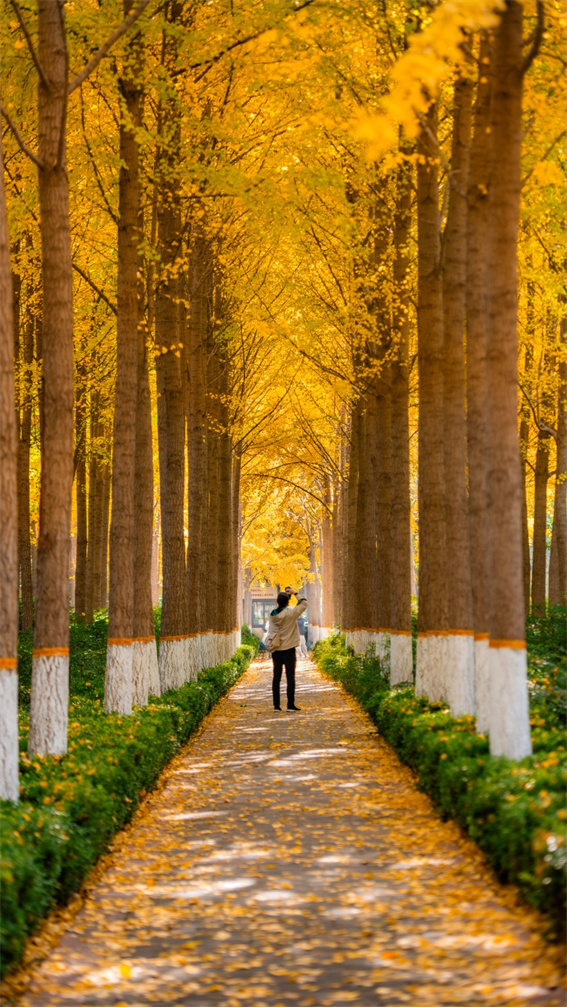 11月4日深秋時節(jié),鄭州文博廣場的600余株銀杏樹悄然披上“黃金甲”,綿延成一片燦爛的金色畫卷,為市民呈現(xiàn)了一場迷人的視覺盛宴。