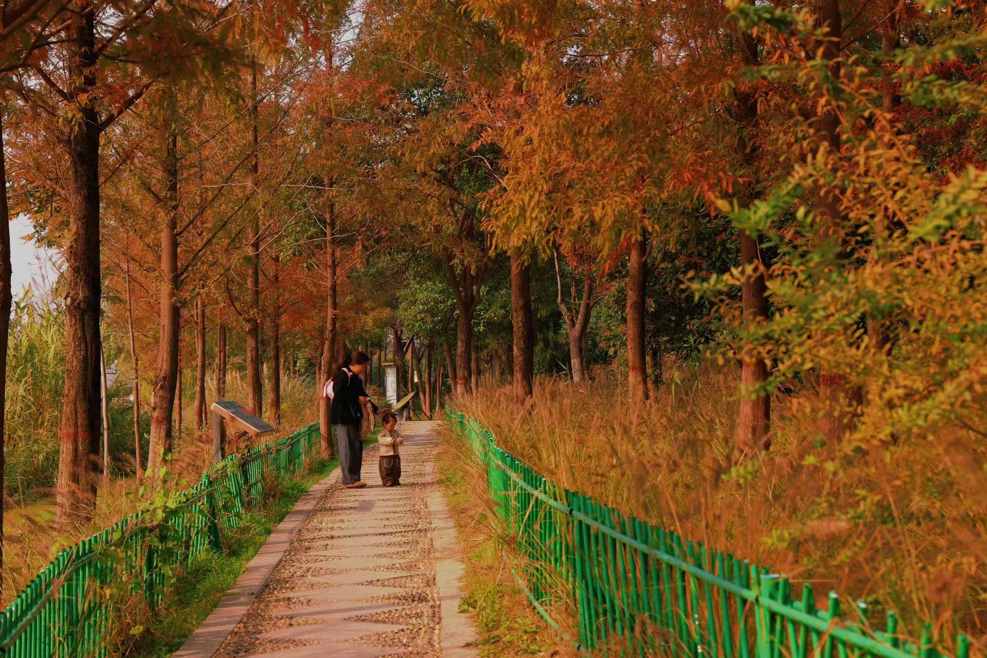 據(jù)了解,容湖的水杉、池杉等樹種在11月進(jìn)入最佳觀賞期,色彩會(huì)從橙黃逐步加深至深紅,觀賞期可持續(xù)至12月初。目前公園已優(yōu)化了沿湖步道的標(biāo)識與休憩設(shè)施,方便游客沉浸式感受“紅杉映湖”的初冬盛景。