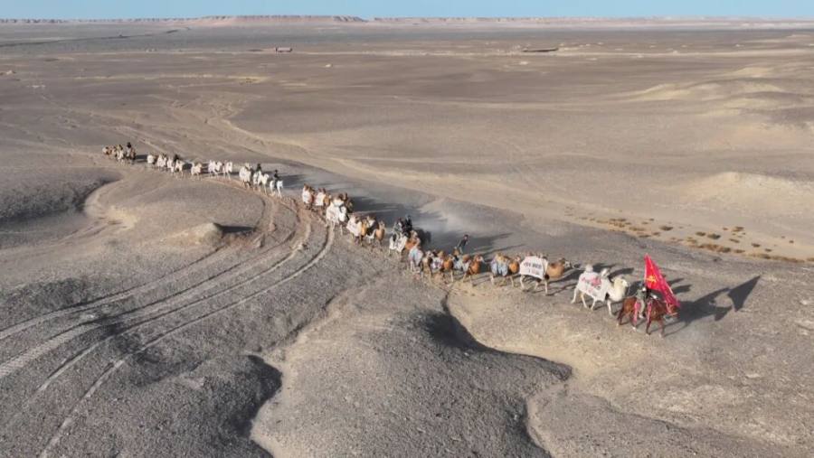 “東天山來的駱駝隊”是一支于2025年8月22日從新疆維吾爾自治區(qū)哈密市巴里坤哈薩克自治縣啟程的特殊隊伍,他們沿著古絲綢之路北道一路東行,旅程計劃持續(xù)100余天,總行程約2700公里。預計抵達洛陽后,隊伍將繼續(xù)向東進發(fā),來到河南省會鄭州,感受千年商都的好客與熱情。這支由33峰駱駝和31余名隊員組成的隊伍,帶著傳播絲路文化,促進民族交流的使命,穿越沙漠、戈壁、無人區(qū),如今已經路過酒泉、張掖、武威等古絲綢之路重鎮(zhèn)。