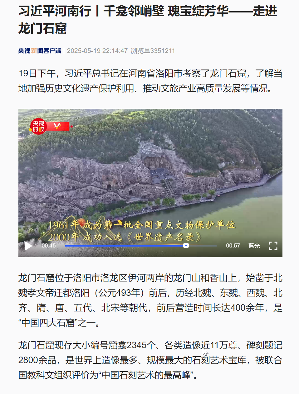從國家級媒體的權威發(fā)聲到地方媒體的貼心呈現(xiàn),篇篇報道勾勒出龍門石窟的文化魅力與時代活力。龍門石窟的持續(xù)“破圈”,不僅是一座石窟的熱度證明,更是中華文化穿越千年、生生不息的生動寫照。