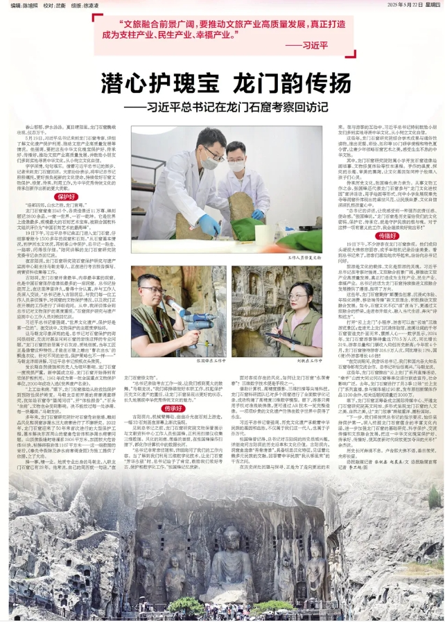 作為河南文化的 “金名片”,龍門石窟在省級媒體平臺同樣熱度不減。河南日報通過多角度、多形式的系列報道,全面展現(xiàn)了龍門石窟深厚的文化內涵與時代價值。例如,《潛心護瑰寶 龍門韻傳揚——習近平總書記在龍門石窟考察回訪記》一文,通過一線工作人員口述,還原考察現(xiàn)場的動人細節(jié)。