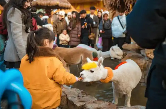 此外,深受親子游客喜愛的動(dòng)物互動(dòng)項(xiàng)目,如“酋長(zhǎng)之家”探秘、“動(dòng)物百老匯”觀賞,持續(xù)發(fā)揮其自然教育與生命關(guān)懷的獨(dú)特價(jià)值。冰雪世界的滑冰、飄雪、企鵝投喂活動(dòng)與溫泉區(qū)的水豚特色泡池,則為游客提供了多樣化的度假選擇。同時(shí),園區(qū)的工作人員通過親切互動(dòng)、派送“紅辣椒”節(jié)日禮物等方式,傳遞溫暖祝福,讓服務(wù)本身成為美好體驗(yàn)的一部分。