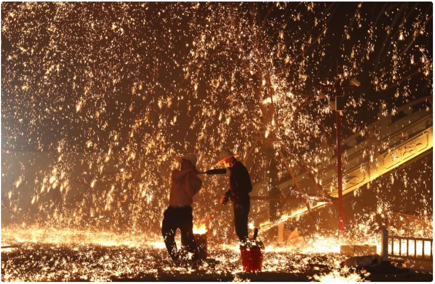 燈會(huì)區(qū)域演藝紛呈,非遺打鐵花、火壺輪番登場(chǎng),滾燙鐵水化作漫天星火,藝人技藝精湛,引得游人駐足喝彩,賞燈看展演,隨手一拍都是氛圍感大片。