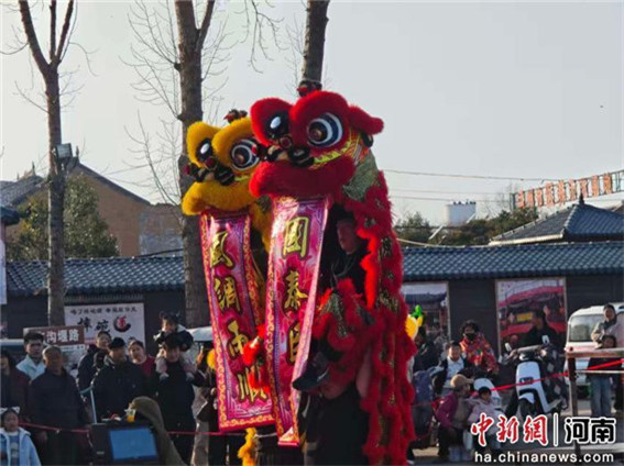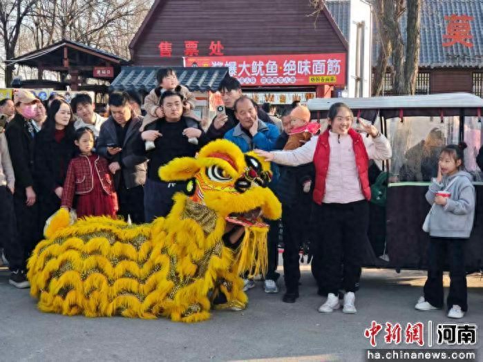 圖為舞獅表演吸引游人拍照打卡。李海珠 攝