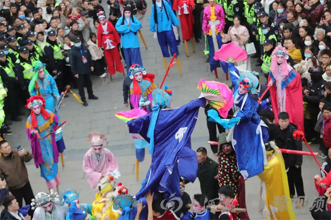 此時(shí),文治閣附近已是人山人海,觀眾們翹首以待。東后街村火神會(huì)前更是鑼鼓喧天,東后街社火隊(duì)伍正在做最后的準(zhǔn)備,等待13時(shí)進(jìn)入古城進(jìn)行巡街表演。