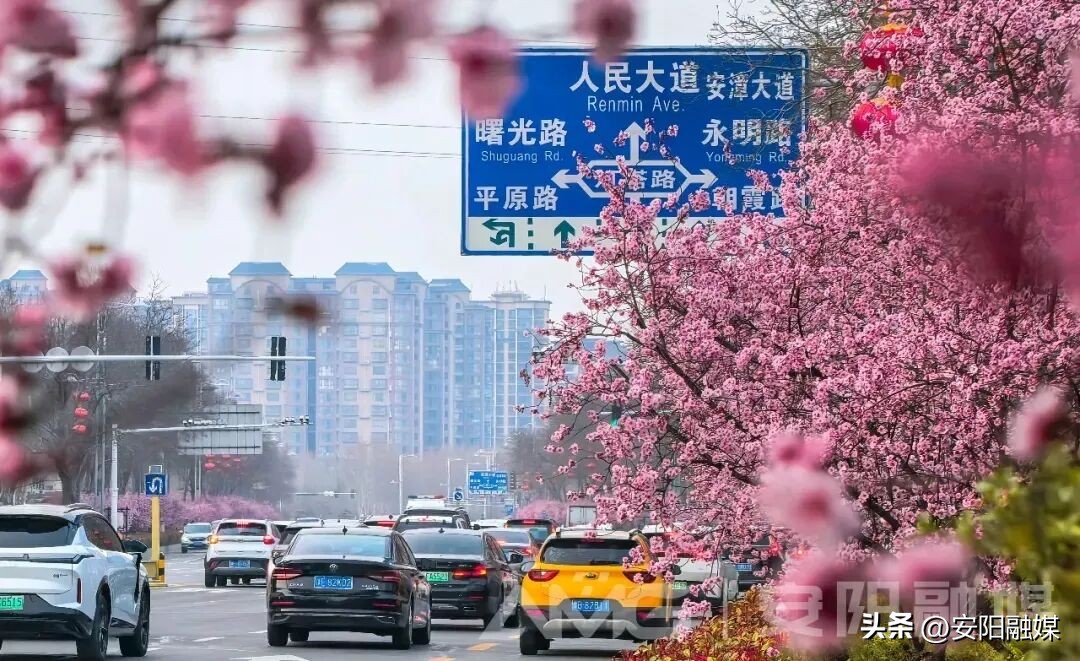 不必特意去公園,安陽的許多道路本身就是一道亮麗的風(fēng)景線。開車或騎行經(jīng)過,不經(jīng)意間就能與春天撞個滿懷。