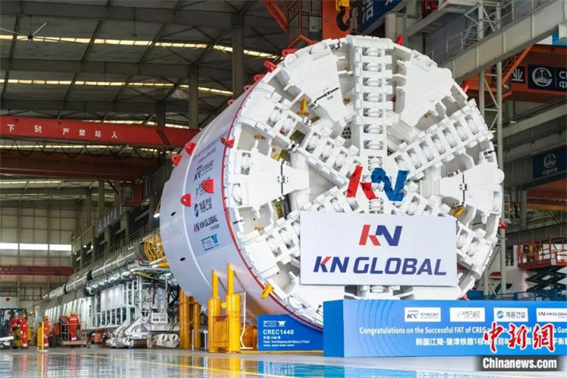 出口韓國(guó)盾構(gòu)機(jī)在鄭州下線。 楊格 攝