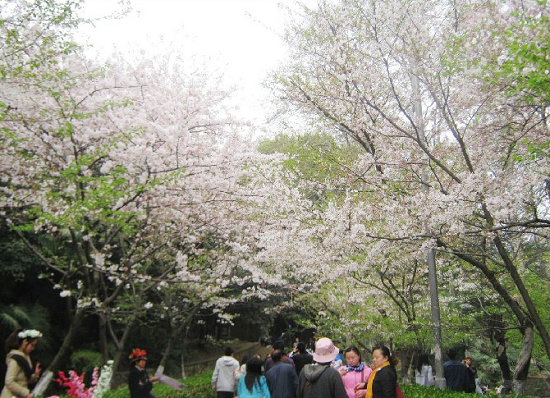 武漢大學(xué)的櫻花主要種植在櫻園和櫻花大道。櫻花大道位于老齋舍和老圖書館的下方,櫻園就在它的旁邊。這里有早櫻、晚櫻、紅垂櫻等10多個(gè)品種的櫻花樹。每年3月中下旬,開放,武漢大學(xué)櫻花節(jié)也在此間舉辦。在武大賞櫻可以選擇在櫻花大道漫步,放眼望去,雪白的櫻花掛滿枝頭,仿若云海,微風(fēng)吹過,落櫻繽紛,好似在下櫻花雨。還可以爬上老齋舍以此為觀景臺(tái),自上而下,俯視花海,一顆顆爛漫盛開的櫻花樹和中西合璧的古典建筑相伴,濃郁的文化氣息撲面而來。櫻花花期很短,一朵櫻花從開花到凋謝不過短短的七日,整棵櫻花樹從開花到全謝大約半個(gè)月的時(shí)間。凄美的櫻花,經(jīng)歷短暫的燦爛絢麗,便輕舞飄落,如同悠忽易失的青春,讓人更加留戀和珍惜她短暫的美麗和絢爛。在武大校園里賞櫻,更多了一份朝花夕拾的情懷,不禁讓人想起校園時(shí)代的青春往事。