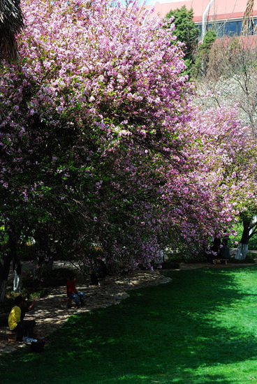春城,也讓這所大學(xué)有著別的大學(xué)沒(méi)有的風(fēng)景。無(wú)論何時(shí),校園里總是彌漫著花香,不同時(shí)節(jié),總是有奇異的花朵或植物冒出來(lái)。走在古老的建筑邊,問(wèn)著花香,聽(tīng)著鳥(niǎo)語(yǔ),在云大,學(xué)習(xí)和生活充滿(mǎn)詩(shī)情畫(huà)意。