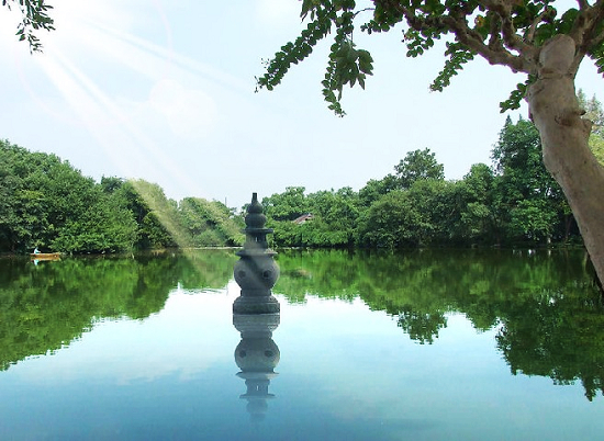 九曲橋東,隔水與一堵白粉短墻相望。墻兩端了無(wú)銜接,形若屏風(fēng)。但粉墻上開(kāi)啟四只花飾精美的漏窗,墻內(nèi)墻外空間隔而不斷,相互滲透。墻外游人熙熙攘攘,墻內(nèi)卻幽雅寧?kù)o,咫尺之間兀自大異其趣。交通情況:由西湖坐船前往