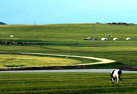 希拉穆仁草原是蜚聲中外的旅游勝地, 它南迎呼和浩特的暖風(fēng), 北聆百靈廟的鈴聲,因清王朝賜名的 “普會(huì)寺” 喇嘛寺屹立河畔, 又名召河。草原的夏秋, 香花遍野, 芳草依依, 迷人的美景使人心曠神怡。在牧民的蒙古包里, 好客的蒙古族主人將會(huì)捧出鮮潔的奶食, 肥美的羊肉, 爽口的炒米, 醇香的奶茶待客, 草原食品那特有的風(fēng)味將透入您的心田。