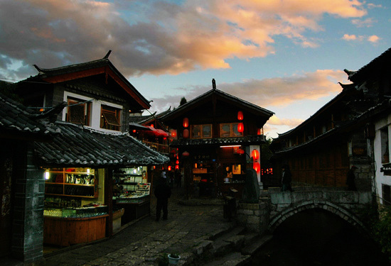 麗江古城又名大研鎮(zhèn),它位于麗江壩中部,北依象山、金虹山、西枕獅子山,東南面臨數(shù)十里的良田闊野。麗江是第二批被批準(zhǔn)的中國歷史文化名城之一,也是中國向聯(lián)合國申報世界文化遺產(chǎn)成功的古城之一。云南省的古城麗江把經(jīng)濟和戰(zhàn)略重地與崎嶇的地勢巧妙地融合在一起,真實、完美地保存和再現(xiàn)了古樸的風(fēng)貌。古城的建筑歷經(jīng)無數(shù)朝代的洗禮,飽經(jīng)滄桑,它融匯了各個民族的文化特色而聲名遠揚。麗江還擁有古老的供水系統(tǒng),這一系統(tǒng)縱橫交錯、精巧獨特,至今仍在有效地發(fā)揮著作用。