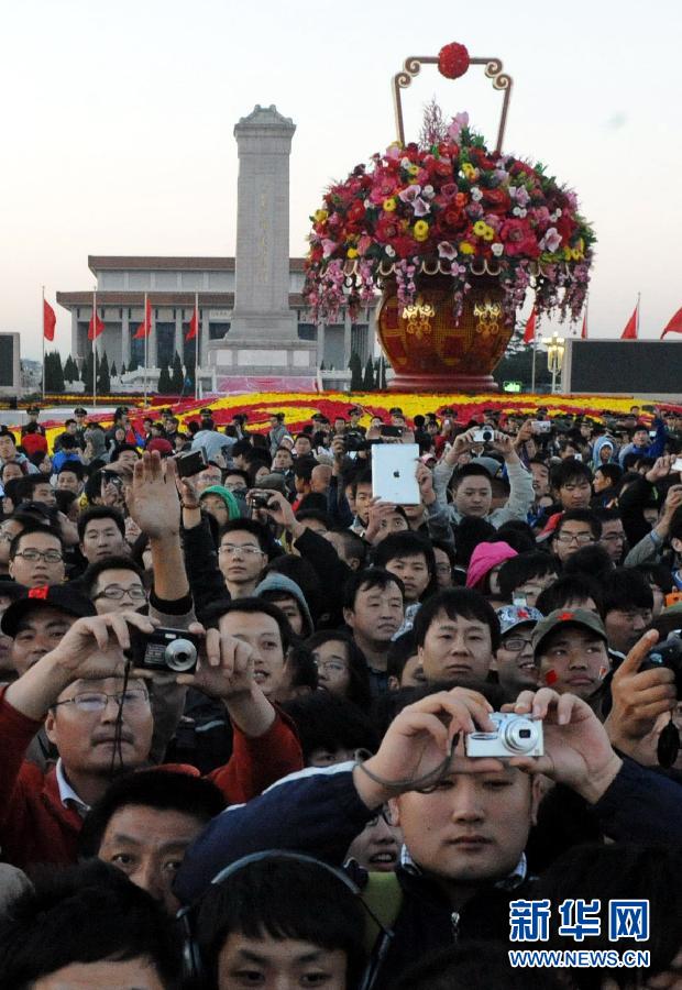 10月1日,群眾在天安門廣場觀看升國旗儀式。當(dāng)日,來自全國各地的數(shù)萬名群眾聚會(huì)北京天安門廣場,觀看升國旗儀式。