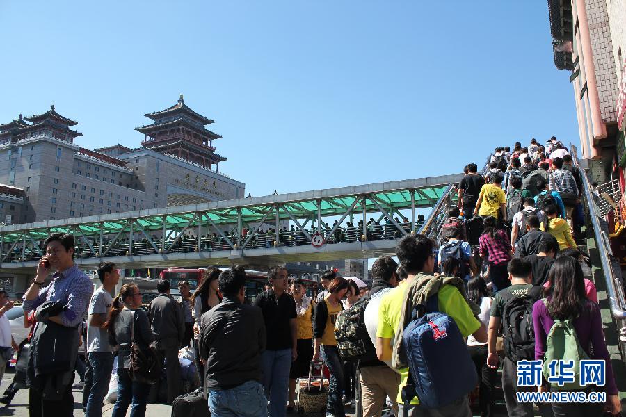 9月30日,北京西站橋人頭攢動。當日是今年中秋國慶黃金周的第一天,也是中國高速公路對小型客車實行免費通行首日,全國各地客流、車流洶涌,各級有關(guān)部門正全面迎戰(zhàn)“最長黃金周”。據(jù)介紹,2012年中國傳統(tǒng)節(jié)日中秋節(jié)和國慶節(jié)連在了一起,連續(xù)8天的“最長黃金周”里,約有一半中國人——總計約7.4億人次,要通過公路、鐵路、民航等出行,創(chuàng)下同期出行新紀錄,中國交通管理部門承受巨大壓力。據(jù)預計,黃金周期間,中國公路水路客運量將達到6.6億人次,日均8250萬人次,較去年同期增長8.8%。鐵路方面,長假出行高峰日甚至“不亞于春運”。9月27日至10月7日,全國鐵路預計發(fā)送旅客7540萬人,日均近700萬人。除了史無前例的長假,全國公路小客車節(jié)假日免費通行政策的首度實施無疑將改變許多人出行的選擇,這也將給“最長黃金周”帶來不小的挑戰(zhàn)。