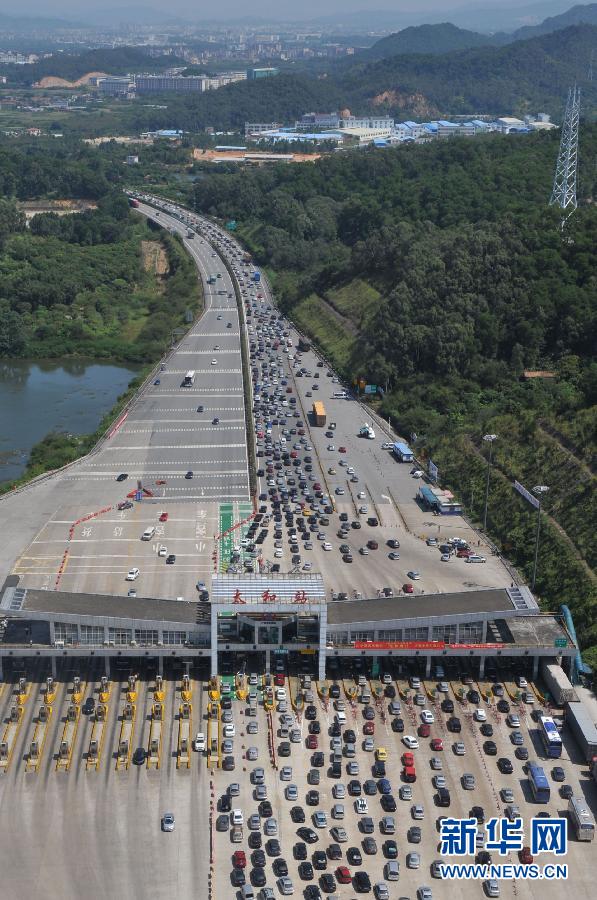 9月30日,G50滬渝高速江北收費(fèi)站前,出城方向的車流正有序排隊(duì)通行。當(dāng)日是今年中秋國慶黃金周的第一天,也是中國高速公路對(duì)小型客車實(shí)行免費(fèi)通行首日,全國各地客流、車流洶涌,各級(jí)有關(guān)部門正全面迎戰(zhàn)“最長黃金周”。據(jù)介紹,2012年中國傳統(tǒng)節(jié)日中秋節(jié)和國慶節(jié)連在了一起,連續(xù)8天的“最長黃金周”里,約有一半中國人——總計(jì)約7.4億人次,要通過公路、鐵路、民航等出行,創(chuàng)下同期出行新紀(jì)錄,中國交通管理部門承受巨大壓力。據(jù)預(yù)計(jì),黃金周期間,中國公路水路客運(yùn)量將達(dá)到6.6億人次,日均8250萬人次,較去年同期增長8.8%。鐵路方面,長假出行高峰日甚至“不亞于春運(yùn)”。9月27日至10月7日,全國鐵路預(yù)計(jì)發(fā)送旅客7540萬人,日均近700萬人。除了史無前例的長假,全國公路小客車節(jié)假日免費(fèi)通行政策的首度實(shí)施無疑將改變?cè)S多人出行的選擇,這也將給“最長黃金周”帶來不小的挑戰(zhàn)。新華社記者 劉潺 攝