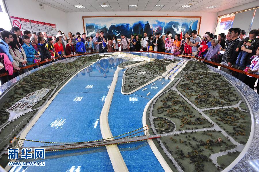 10月2日,游客在三峽大壩景區(qū)內觀看三峽工程模型。今年“超長黃金周”期間,正值三峽水庫175米汛后試驗性蓄水,游客為一睹高水位下的三峽景觀紛至沓來。據(jù)三峽旅游總公司相關負責人介紹,10月1日國慶節(jié)當日,景區(qū)共接待游客2.4萬人次,創(chuàng)下2011年以來的最高值,預計2日游客將達到3萬人次;長假前3天,游客總數(shù)將創(chuàng)下三峽大壩景區(qū)開放以來的歷史新高。