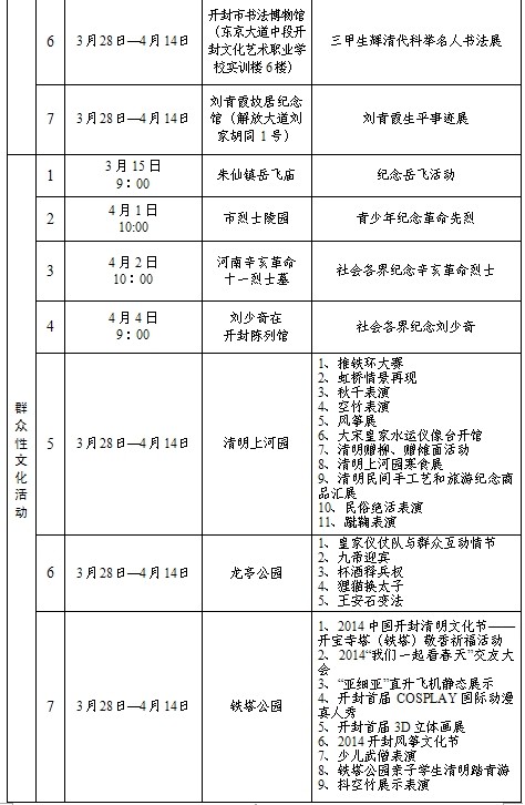 2014中國開封清明文化節(jié)活動(dòng)日程安排表(三)