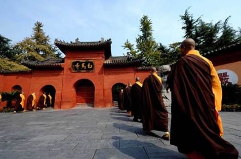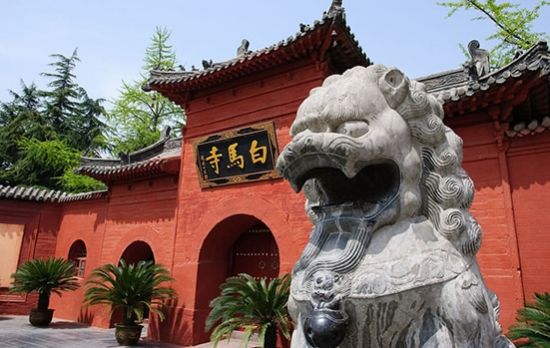 十三朝古都洛陽的東郊,隱藏在郁郁蔥蔥的長林古木之中的是一座被稱為“中國第一古剎”的白馬寺。漢明帝時(shí)邀請?zhí)祗蒙街袊v佛法,并用白馬馱載佛經(jīng)、佛像到京城洛陽,漢明帝敕令仿天竺式樣修建寺院,為銘記白馬馱經(jīng)之功,遂將寺院取名“白馬寺”。