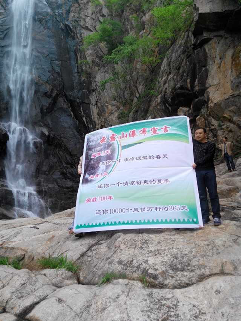 “瀑布哥”用最平凡的行動,宣誓著最美的愛情宣言,F場很多人問“瀑布哥”:“你為什么用這么另類的方式倡導人們保護水資源?”瀑布哥”李峰說道:“寶塔瀑布是伏牛山系落差最大的瀑布,如果我們現在不愛護水資源,我們在往后的100年、20年、甚至更短的時間,我們再也看不到這么大的瀑布!2013年欒川缺水就是大自然對我們的嚴厲警告,所以為了保護中原山水風光,我們必須身體力行,不能只是對水污染事件一味的譴責、再譴責,必須行動起來,用實際行動來保護我們賴以生存的水資源和自然環(huán)境。”