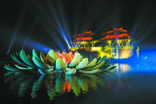 晚上大型水上實(shí)景演出《大宋·東京夢(mèng)華》將把你的心靈帶到宋朝,是整座園區(qū)的點(diǎn)睛之筆。整個(gè)演出運(yùn)用大量的科技手段,制造出夢(mèng)幻的效果,以八闋經(jīng)典宋詞和一幅《清明上河圖》串聯(lián)的畫(huà)面,展示了北宋王朝繁榮昌盛的景象,把人們的記憶和心靈拉向1000多年前的那個(gè)輝煌朝代。