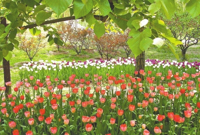 洛陽(yáng)的郁金香花園是典型的“雙花斗艷”之地,四月里牡丹的國(guó)色天香令人流連忘返,四月底五月初盛開(kāi)的郁金香花更顯優(yōu)雅清新,牡丹與郁金香交織在一起,演繹著繁華奔放與清新優(yōu)雅兩種不同的風(fēng)格。郁金香花園里的建筑多為荷蘭風(fēng)格,起伏的小型草原,精致的白色雕像群,高大的荷蘭風(fēng)車,仿佛置身于荷蘭的某個(gè)風(fēng)情小鎮(zhèn);遠(yuǎn)處熱鬧的游樂(lè)場(chǎng),郁郁蔥蔥的綠樹(shù),潺潺的流水,體現(xiàn)出中國(guó)風(fēng)格的園林之美。安靜與繁華在這里并存,十分愜意。據(jù)介紹,洛陽(yáng)郁金香花園的花卉種植面積近150畝,是人們賞花游玩、情侶傳達(dá)愛(ài)情信息、感悟異國(guó)風(fēng)情的一個(gè)好去處。
