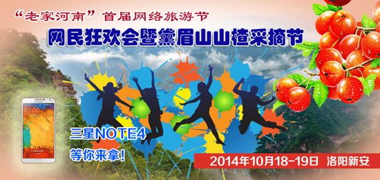 “老家河南”首屆網(wǎng)絡(luò)旅游節(jié)網(wǎng)民狂歡會暨黛眉山山楂采摘節(jié)將于10月10日至20日在世界地質(zhì)公園洛陽新安黛眉山舉行。“老家河南”首屆網(wǎng)絡(luò)旅游節(jié)組委會將組織“中原旅游年票卡”會員和網(wǎng)民自駕游游客于18日至19日游黛眉山景區(qū),入住黛眉行宮、共賞地質(zhì)奇跡、免費采摘山楂、同享快樂金秋,更有機會獲得三星NOTE4大獎!