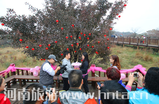 行程第二天,在云頂草原的山楂樹下,在18日晚狂歡篝火晚會中選出的“最佳情侶”,伴著游客們的見證和祝福經(jīng)過工作人員的精心安排,在云頂草原上演了一出“最浪漫的山楂樹之戀”,他們在樹上系上許愿風(fēng)鈴,共同立下愛的誓言。品紅果,送禮物,最佳情侶也向同行的游客們共同分享著愛情的美好和采摘的喜悅。