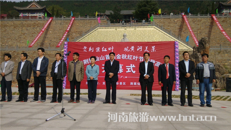 “賞荊紫紅葉,觀黃河美景”。10月18日上午,由龍?zhí)洞髰{谷景區(qū)、荊紫仙山景區(qū)主辦的首屆金秋紅葉節(jié)暨登高節(jié)開幕式在洛陽荊紫仙山景區(qū)太極天樂廣場隆重舉行。新安縣領(lǐng)導(dǎo)班子、河南省旅游局等各級領(lǐng)導(dǎo)蒞臨開幕式現(xiàn)場,還有縣太極拳協(xié)會、楹聯(lián)協(xié)會、攝影家協(xié)會的負(fù)責(zé)人及部分會員,省內(nèi)十?dāng)?shù)家媒體朋友也光臨開幕式并出席開幕式。