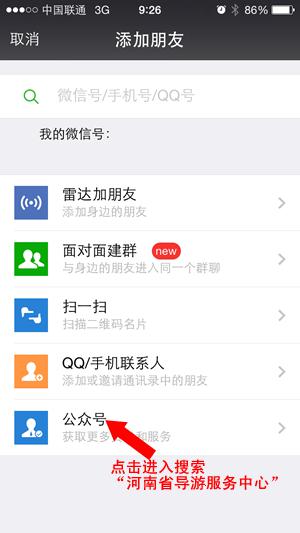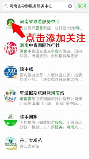 導游員只需用手機微信在公眾號里搜索“河南省導游服務中心”,或者掃描中心微信二維碼,即可添加河南省導游服務中心官方微信號。