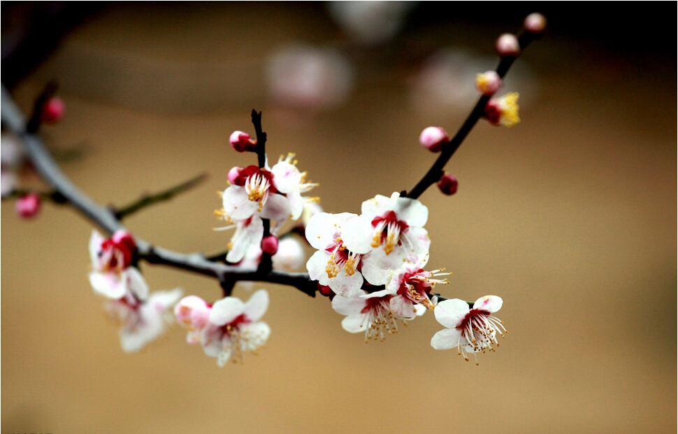 梅花的自然花期一般在初冬或早春,即12月下旬到2月中旬。梅花芬芳濃郁,暄香遠溢。若去賞梅,尚未近其樹,未見其花,便先有浮動的暗香陣陣襲來,為你引路。