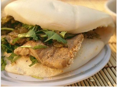 傳統(tǒng)竹蒸籠蒸出綿密的面皮,裹著淋上老鹵汁的豬肉,夾上花生粉、酸菜、香菜,肥而不膩,很好吃。重口食肉族們一定不能錯(cuò)過!
