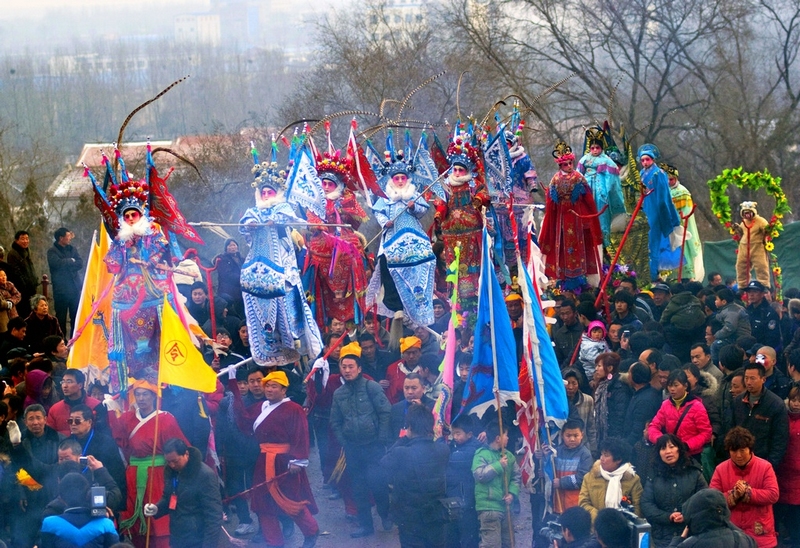 ?h古廟會,已有1600多年歷史,每年正月初一到二月初二,來自晉、冀、魯、鄂、皖等省及本省周邊縣市的香客和觀光游人,絡(luò)繹不絕,最高日客流量可達(dá)20多萬人,是華北第一大廟會。廟會期間,傳統(tǒng)的民間社火,扭秧歌、踩高蹺、耍獅子、舞龍、竹馬、武術(shù)、旱船等,熱火朝天。尤為熱鬧的是正月十六,文藝團(tuán)體紛紛登場。馬戲團(tuán)、馴獸團(tuán)、雜技團(tuán)、武術(shù)氣功表演團(tuán),把廟會聲勢推向一個又一個高潮。地方小吃,香氣撲鼻。鋪牛肉、黃米糕、胡辣湯、穌火燒、石子饃、酸辣香麻丸子湯,不一而足,風(fēng)味各異,煞是誘人。
