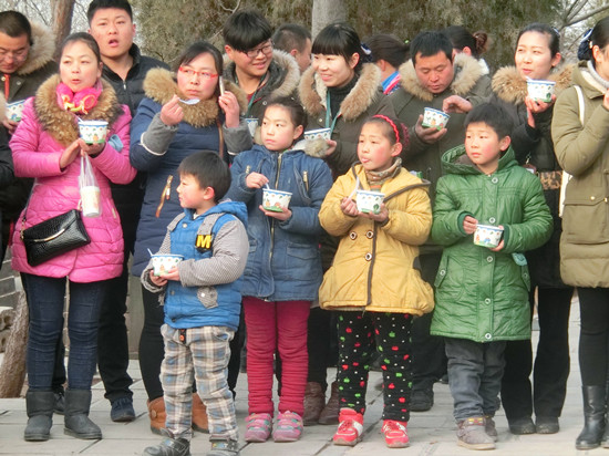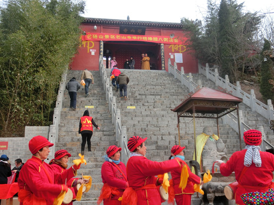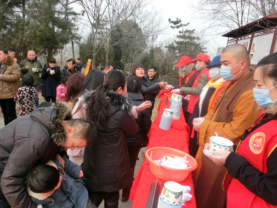 2015年1月27日,農(nóng)歷臘月初八,芒碭山漢文化旅游區(qū)芒山寺舉行“祝圣祈福吉祥施粥法會”,并依叢林祖制,用紅棗,蓮子等諸妙味煮粥供佛,并和大眾結(jié)緣。“隆福送溫暖,舍粥結(jié)萬緣”,為恭迎釋迦牟尼佛雪山成道紀(jì)念日,芒碭山漢文化旅游區(qū)芒山寺施吉祥粥。