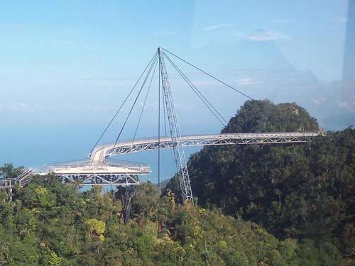 蘭卡威天塹飛橋( Langkawi Sky-Bridge):馬來西亞,蘭卡威。全球最高的單體結(jié)構(gòu)支撐的橋梁之一,位于馬來西亞的蘭卡威(langkawi)群島的MatCincang山頂,海拔高達2,000米,長為125米,卻不足2米寬,為半月形步行橋,建于2004年。橋形呈圓弧狀,主體由鋼材料構(gòu)成。