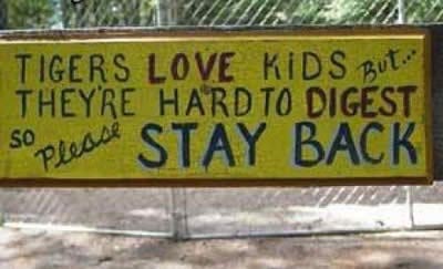 老虎喜歡小朋友,但是他們很難消化,所以,請(qǐng)站遠(yuǎn)點(diǎn)!