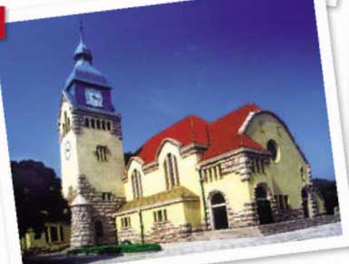 典型的德國古堡建筑,輪廓簡練,基座用厚重的花崗巖壘砌而成,顯得凝重粗獷,是青島著名的俯瞰觀海景觀,由德國駐青島總督府出資修建。在德國本來也有一座按照此圖紙修建的教堂,但已在二戰(zhàn)毀棄,所以這座教堂更顯珍貴。